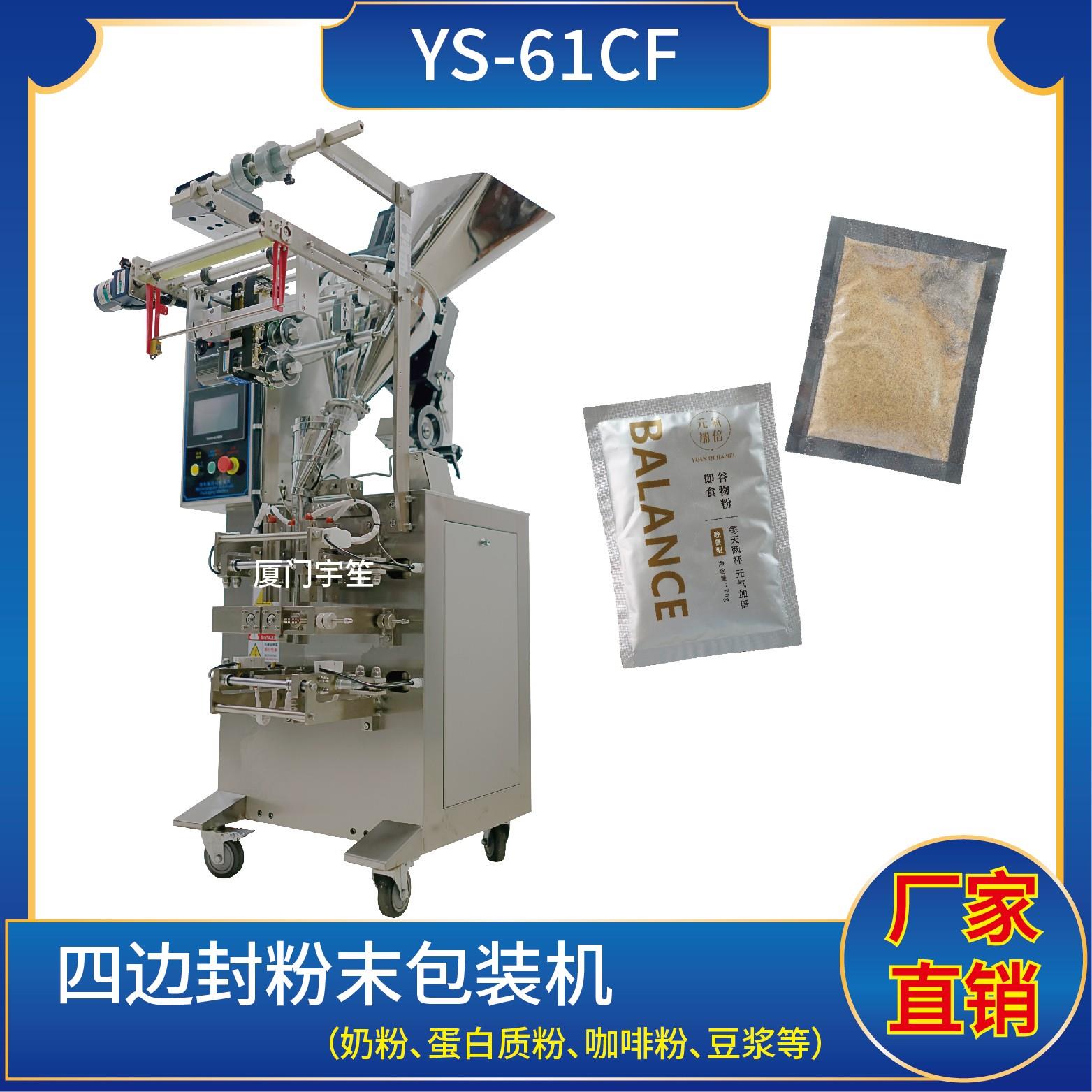 YP-61 四邊封粉劑包裝機1、適用于食品、醫藥、化工、化妝品行業中顆粒物品的計量包裝。2、可自動完成制袋、計量、下料、封合、分切、計數、且可根據客戶要求配置打印批號等功能。3、觸摸屏操作,PLC 控制,驅動步進電機控制袋長,性能穩定、調整方便、檢測準確。智能式溫控儀,PID調節,保證將溫度的誤差范圍控制在1℃以內…