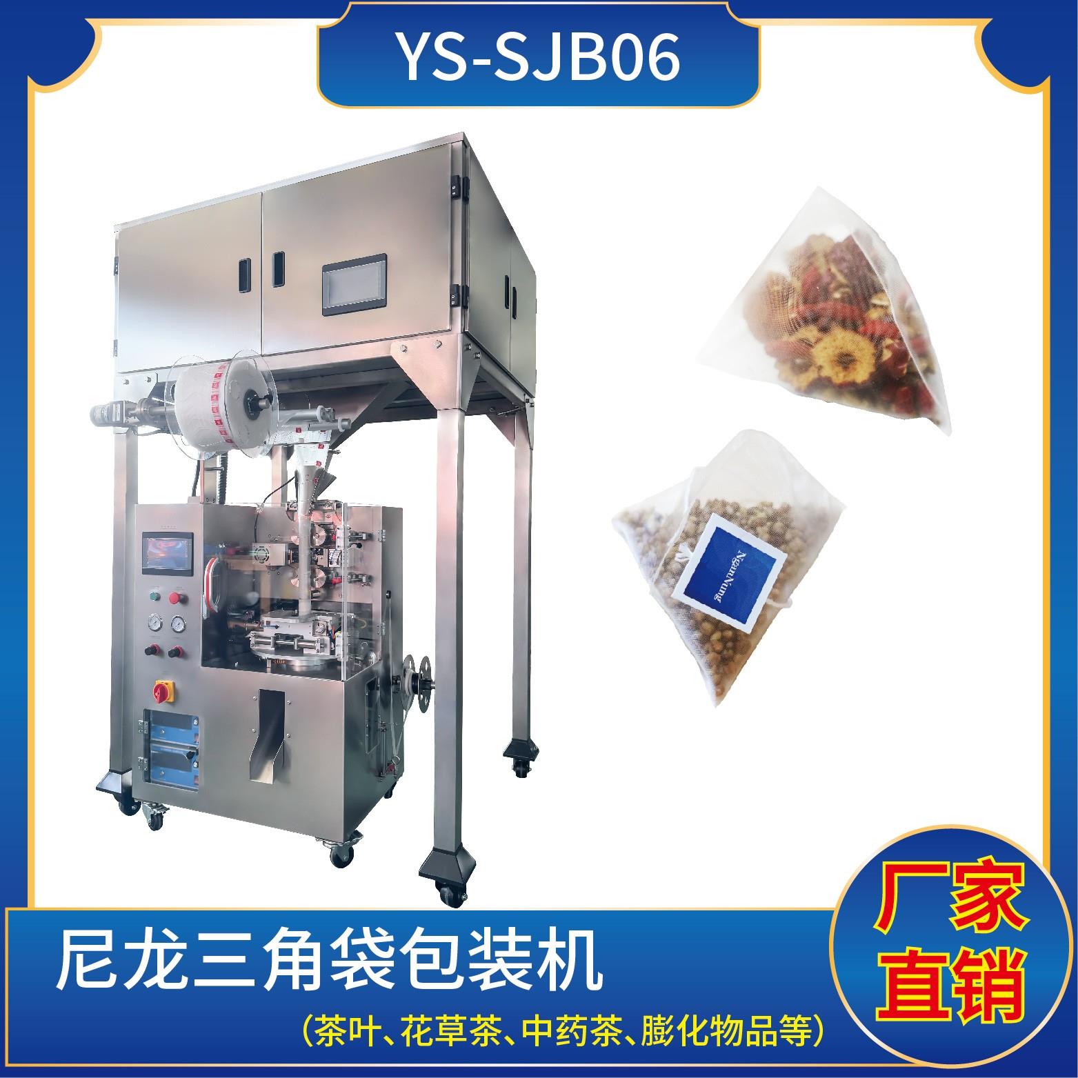YS-SJB06尼龍三角袋包裝機(電子秤系列) 特點 1、適用于綠茶、紅茶、花茶、咖啡、中國茶、健康茶、中藥茶、顆粒等。2、可用于平面袋包裝、三角立體包裝等形式包裝袋。3、整機可自動完成上料、計量、制袋、封口、切斷、計數(shù)、成品輸送等功能。4、選用進口超聲波封口,電子稱計量下料方式,封口牢固,下料準確。5、包裝材料:…