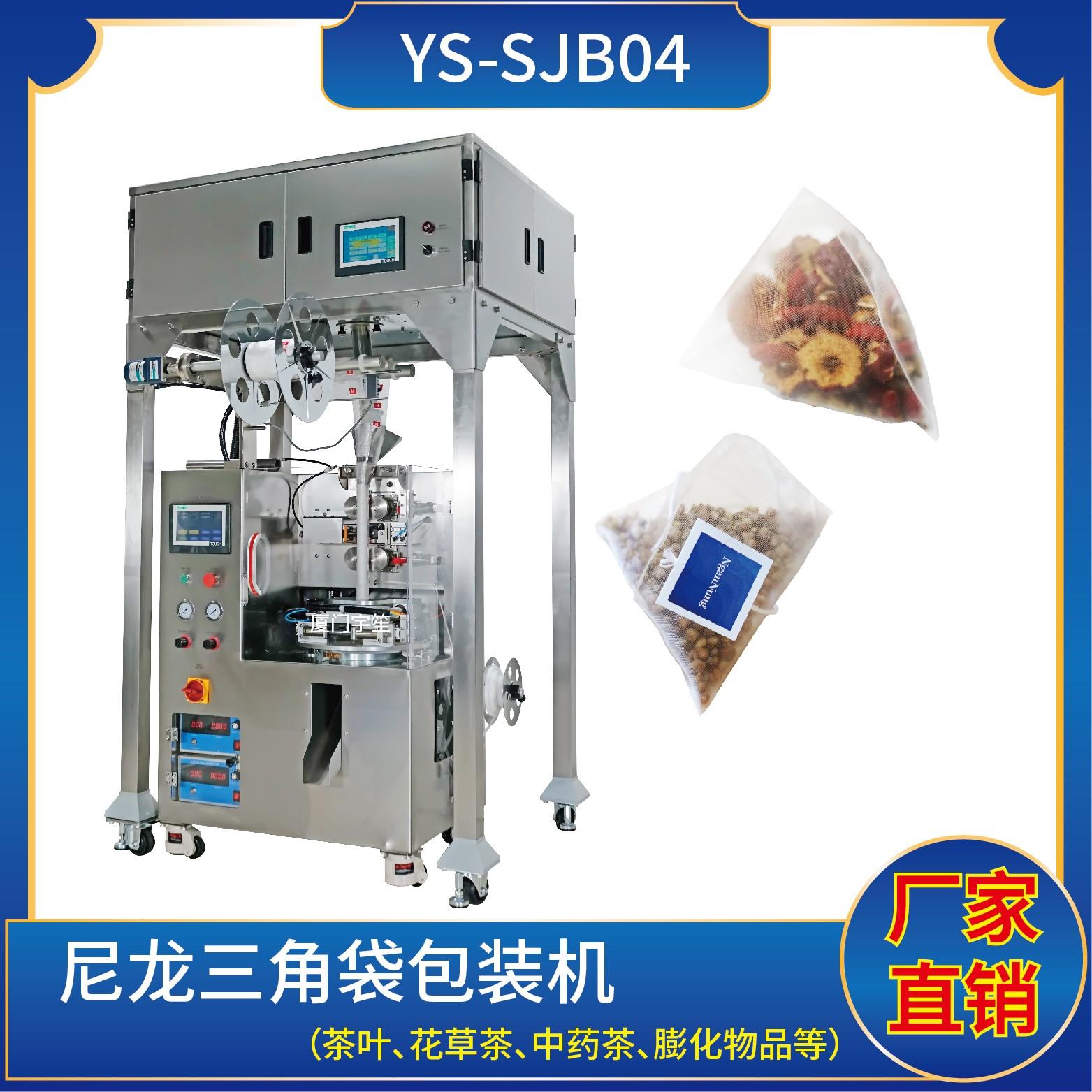 YS-SJB04-NW 三角包內(nèi)外袋包裝機一、特點:1、適用于綠茶、紅茶、花茶、咖啡、中國茶、健康茶、中藥茶、顆粒等。2、可用于平面袋包裝、三角立體包裝等形式包裝袋。3、整機可自動完成上料、計量、制袋、封口、切斷、計數(shù)、成品輸送等功能。4、選用先進超聲波封口,電子稱計量下料方式,封口牢固,下料準確。5、包裝材料:尼龍…