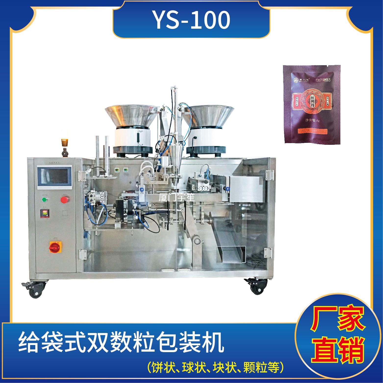 YS-SP100SL 雙數粒給袋式包裝機特 點1、適用于食品、醫藥、化工、化妝品行業中顆粒、餅狀、塊狀、球狀等物品的計量包裝。2、包裝流程全自動、無需人工操作。可根據充填物料的性質選配不同的下料結構。3、觸摸屏操作,PLC 控制,驅動步進電機控制袋長,性能穩定、調整方便、檢測準確。智能式溫控儀,PID調節,保證將溫度的…