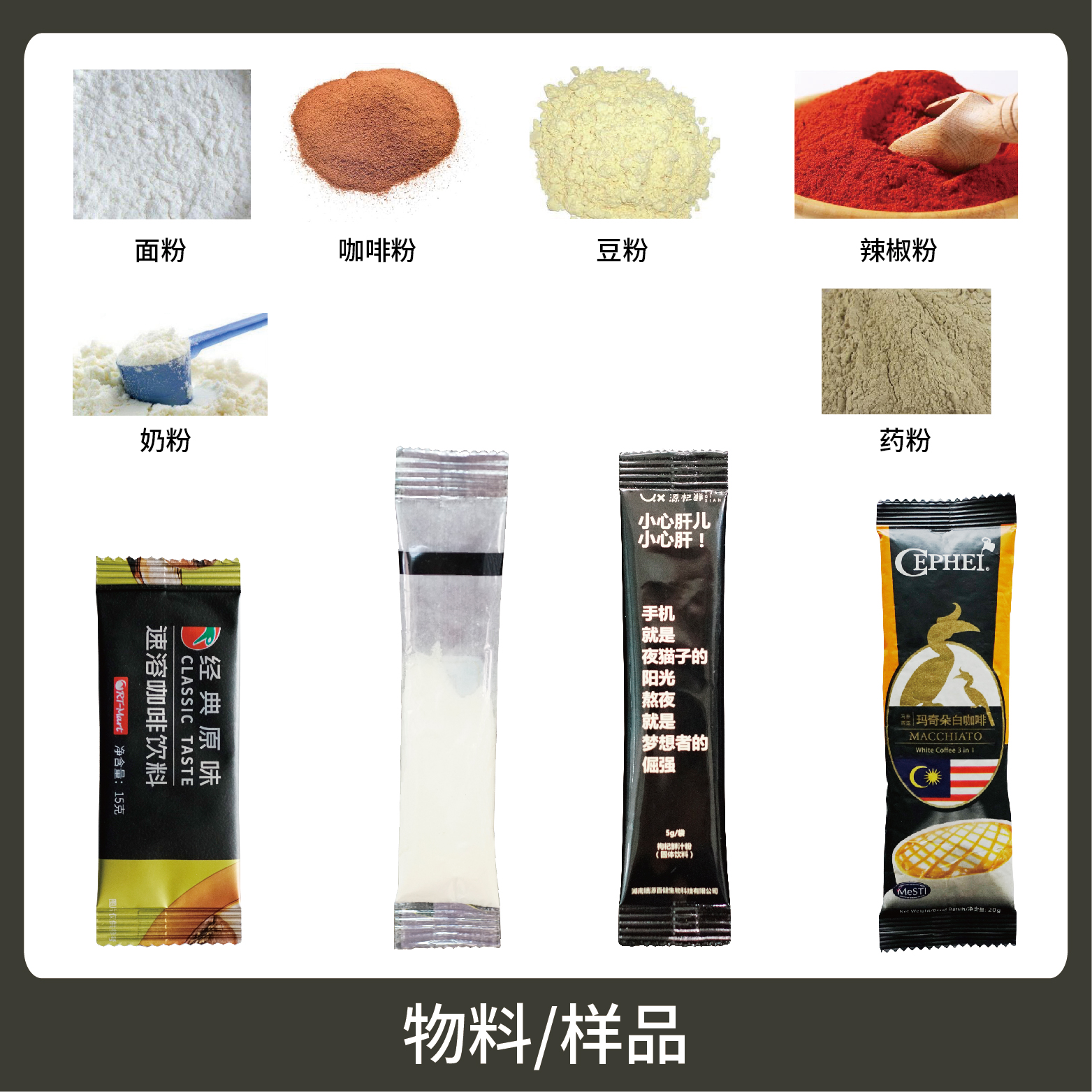 1、適用于食品、醫藥、化工、化妝品行業中粉劑物品的計量包裝,如:鹵料粉、奶粉、蛋白質粉、咖啡粉等。
