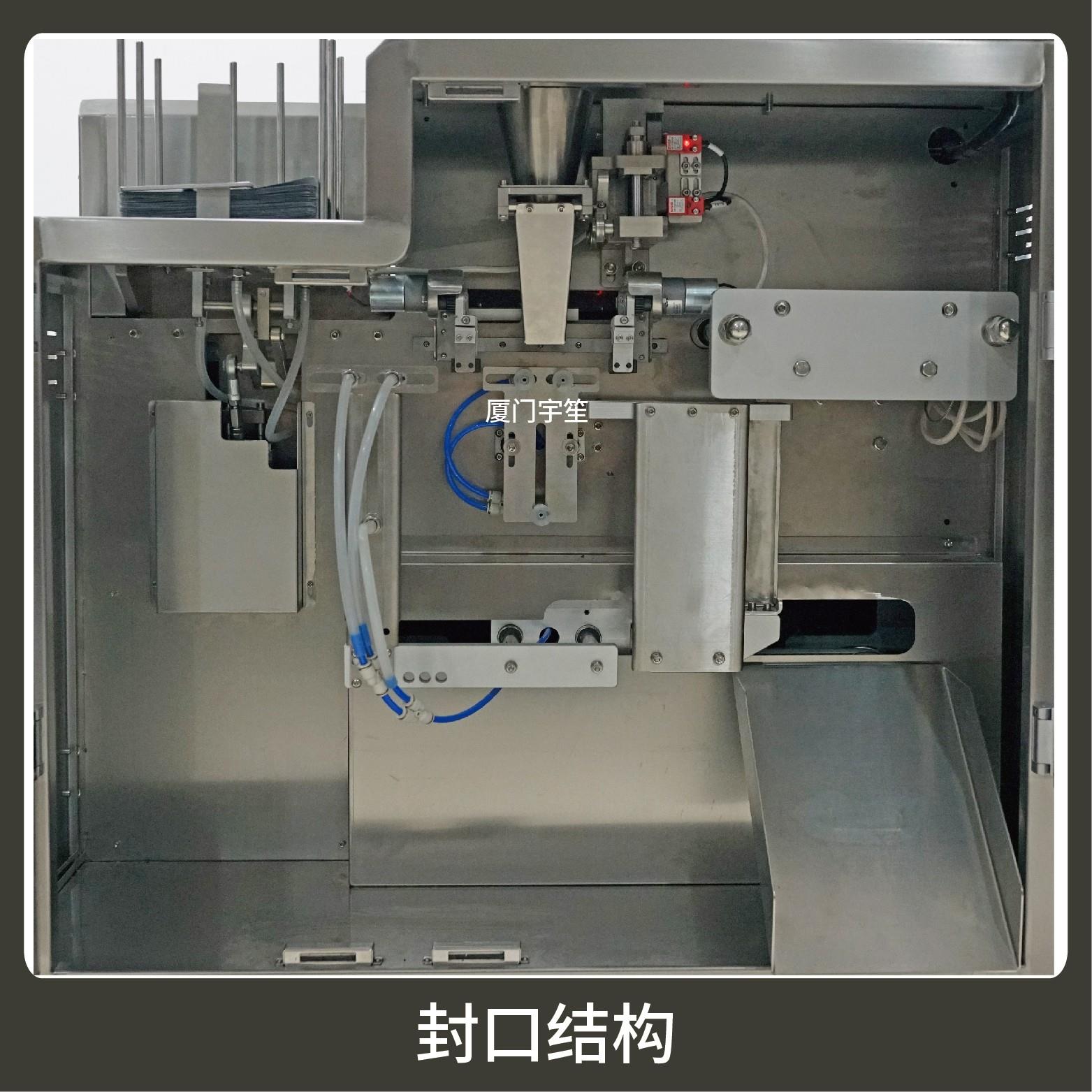 2、調試方便,占用空間小。包裝流程全自動,無需人工操作。可根據充填物料的性質選配不同的下料結構。
