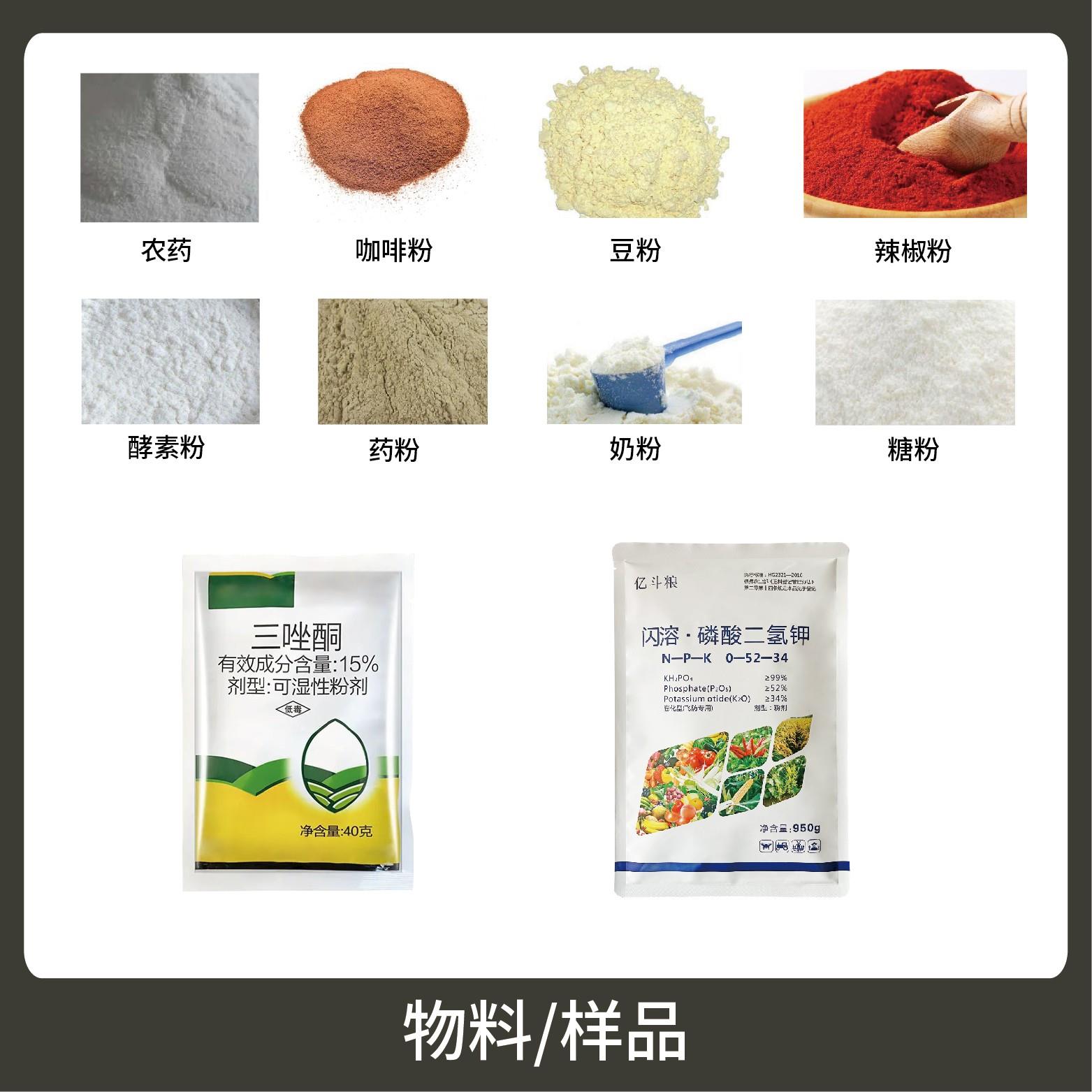 1、適用于食品、醫藥、化工、化妝品行業中粉劑等大克重物品的計量包裝,如:面粉、玉米粉、農藥粉等。