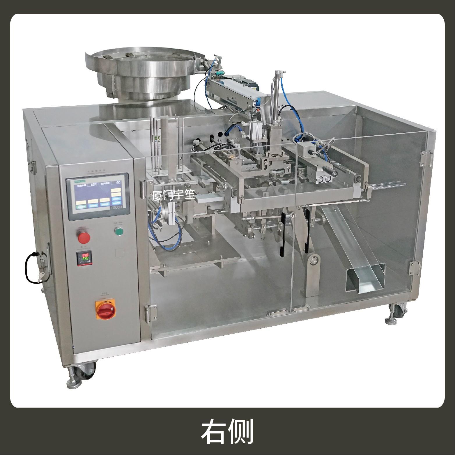 1、包裝流程全自動、無需人工操作??筛鶕涮钗锪系男再|選配不同的下料結構