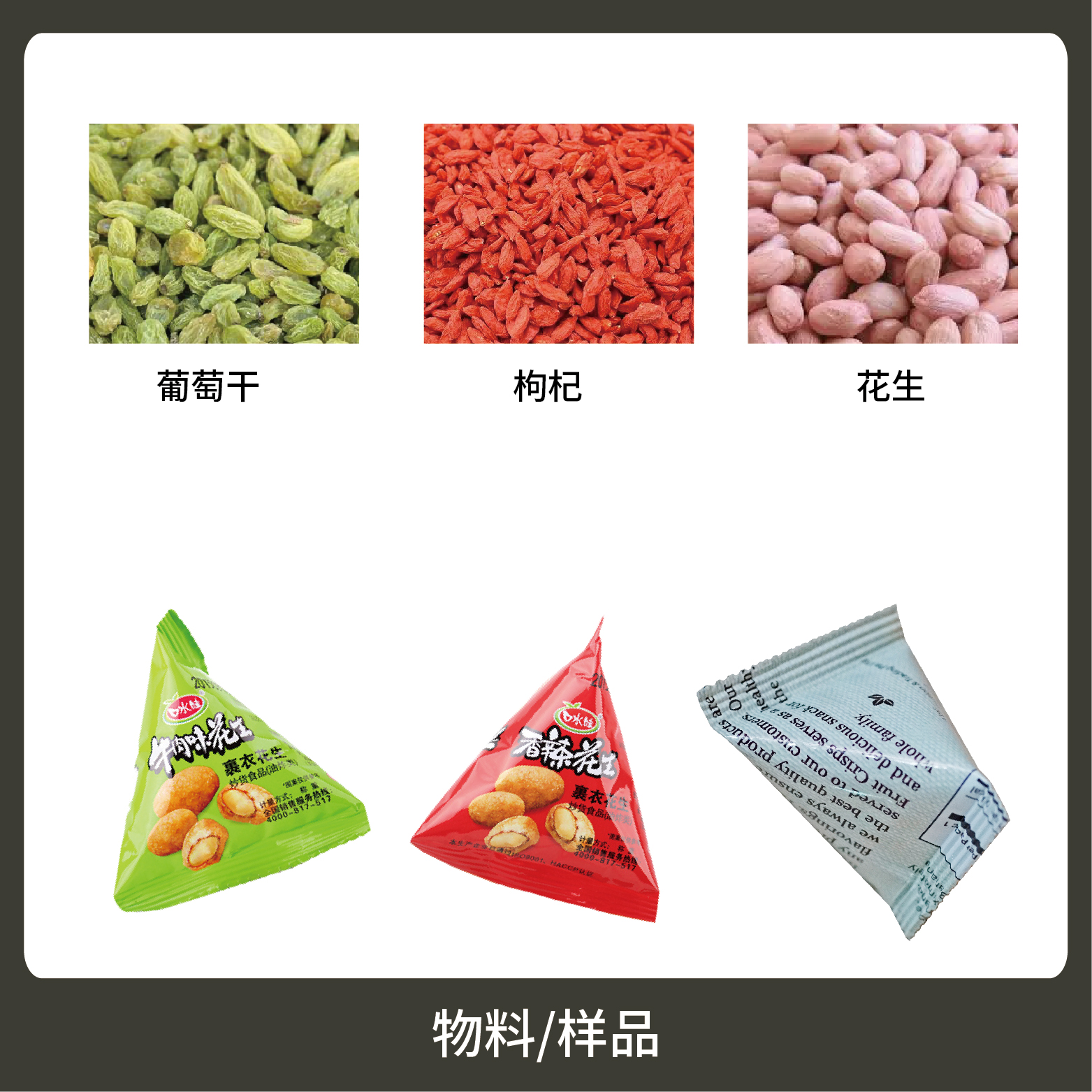 1、適用于食品、醫藥、化工、化妝品行業中顆粒物品的計量包裝,如:尖角脆、巧克力豆、qq糖等。