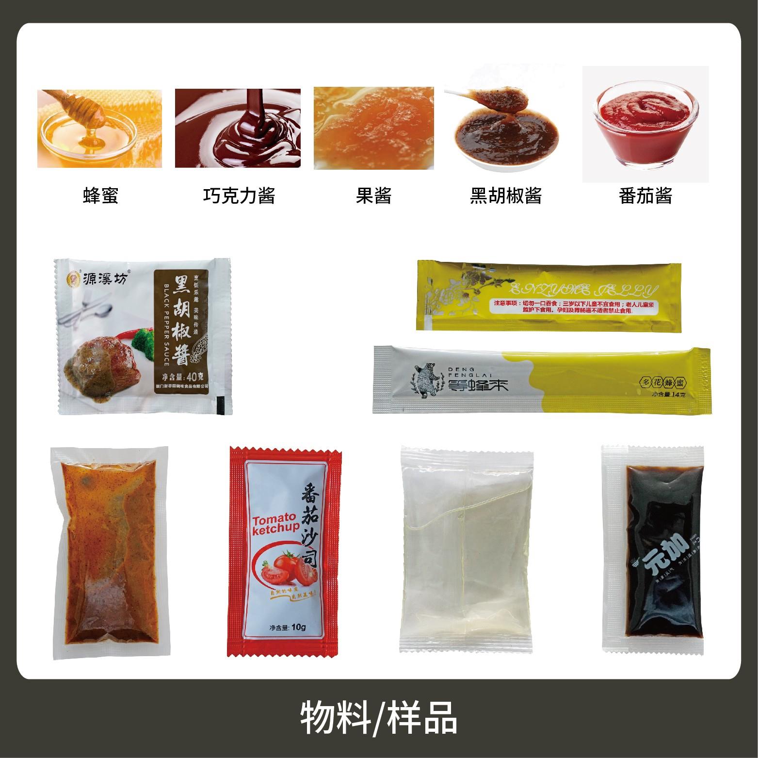 適用于食品、醫藥、化工、化妝品行業中液體、醬料物品的計量包裝,如:番茄醬、辣椒醬、黑胡椒醬、貓條等。