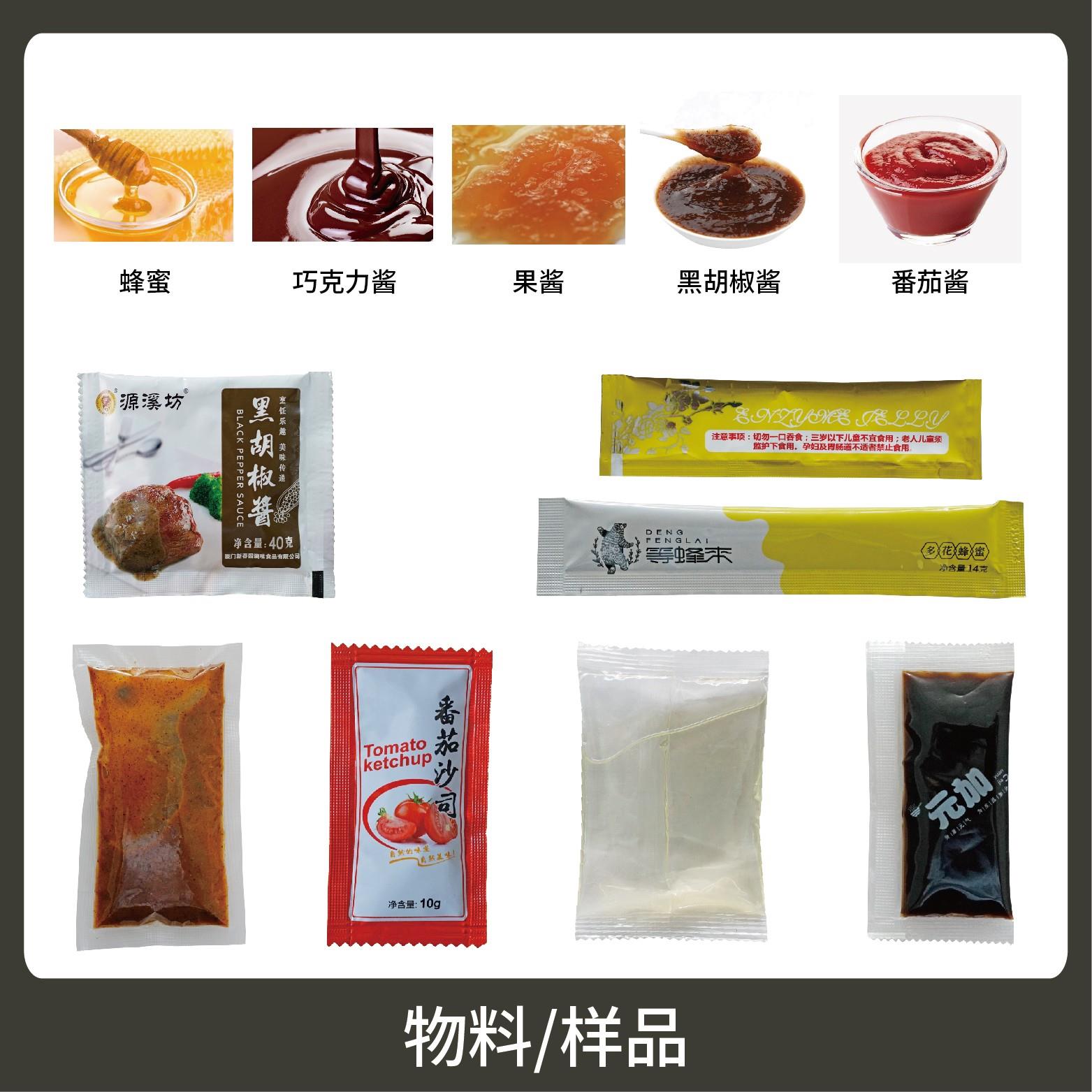 適用于食品、醫藥、化工、化妝品行業中液體、醬料物品的計量包裝,如:黑胡椒醬、辣椒醬、番茄醬等。