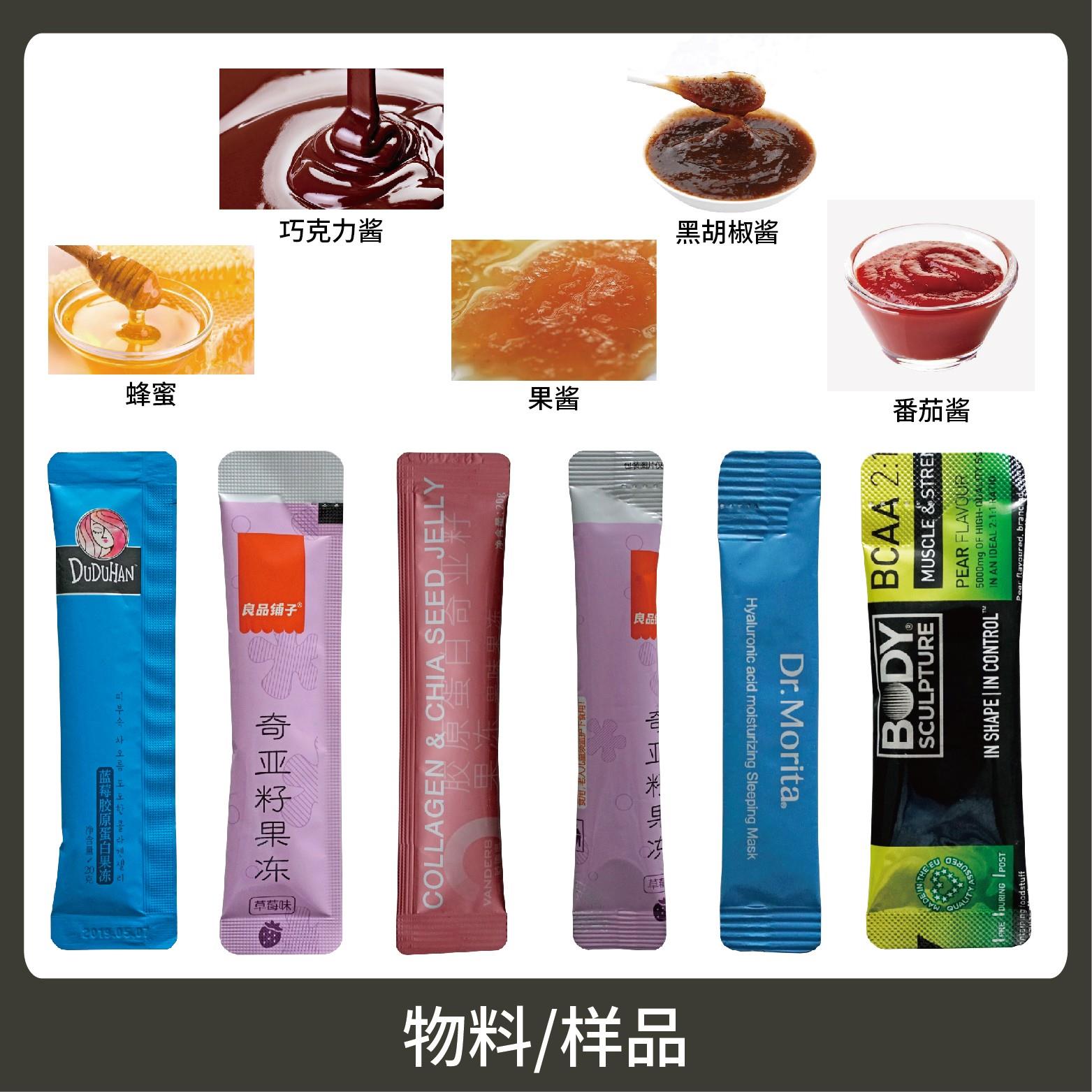 適用于食品、醫(yī)藥、化工、化妝品行業(yè)中液體、醬料等物品的計量包裝,如:蜂蜜、酵素、果凍、藥液、糖漿、原漿等。