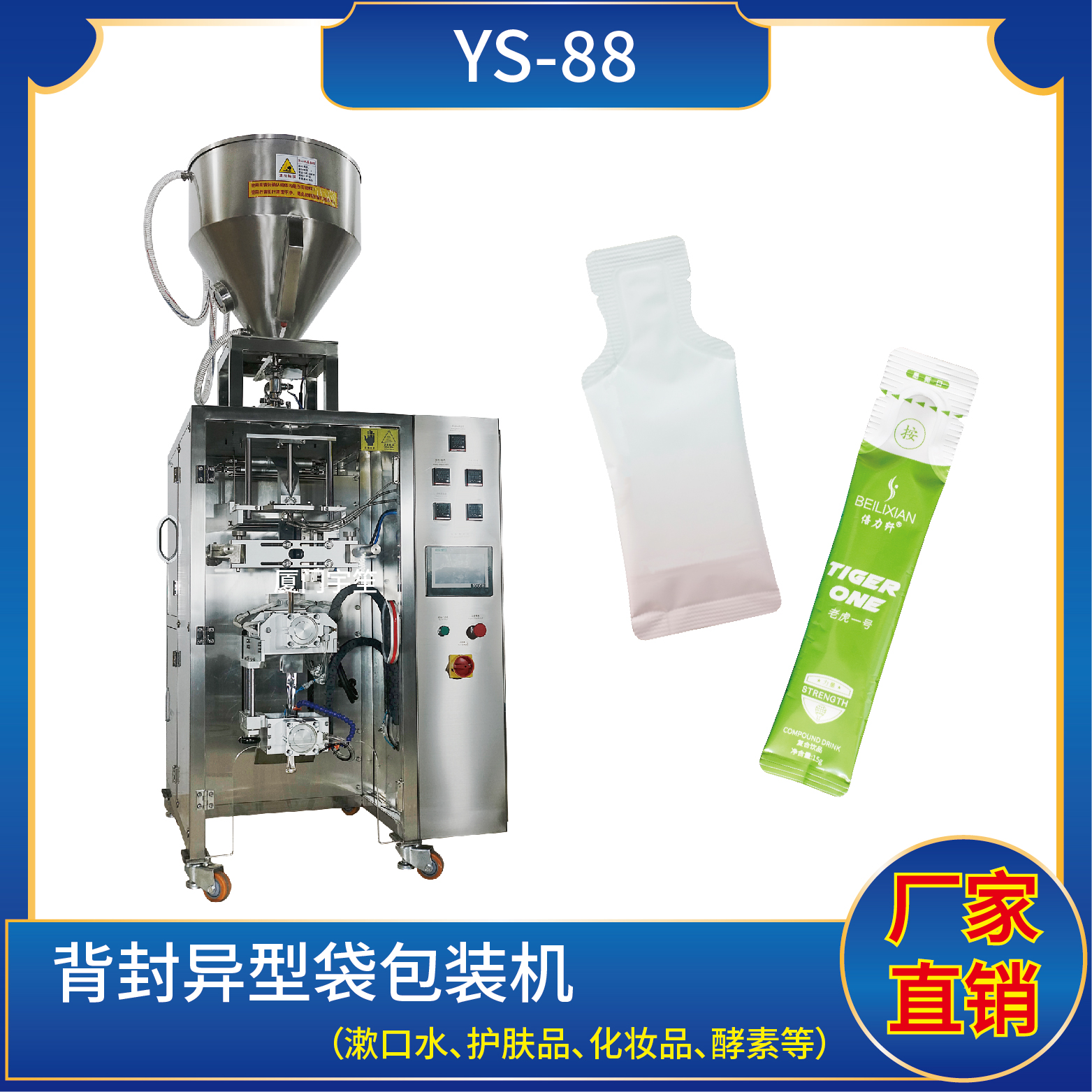 1、適用于各行業中酵素、果汁、漱口水、洗護用品、染發劑、化妝品小樣等醬料、液體物品的異形袋計量包裝。