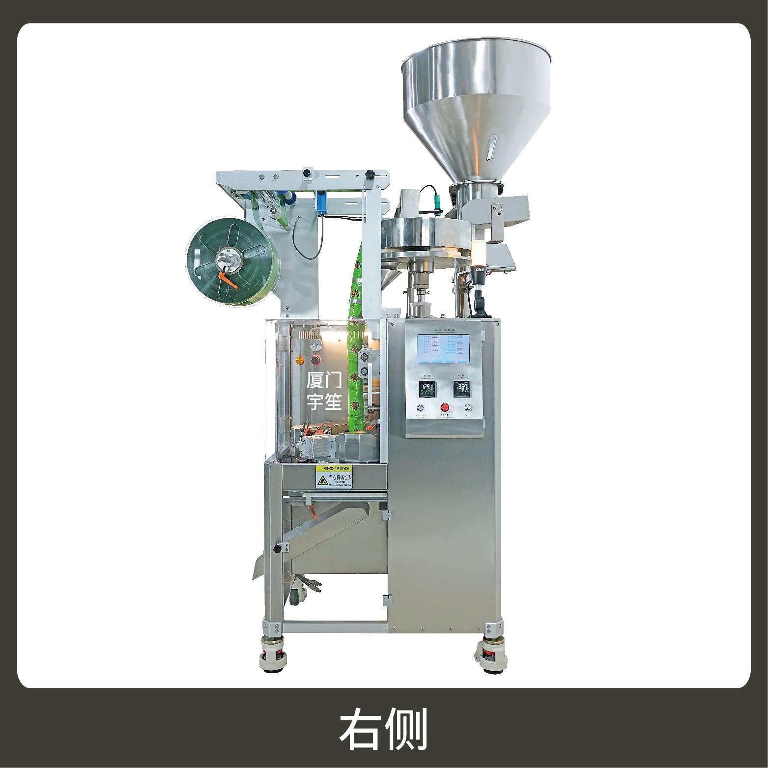 2、一機多用,一鍵切換封口形式(三邊封、背封、三角袋),可自動完成制袋、計量、下料、封合、分切、計數、且可根據客戶要求配置打印批號等功能。