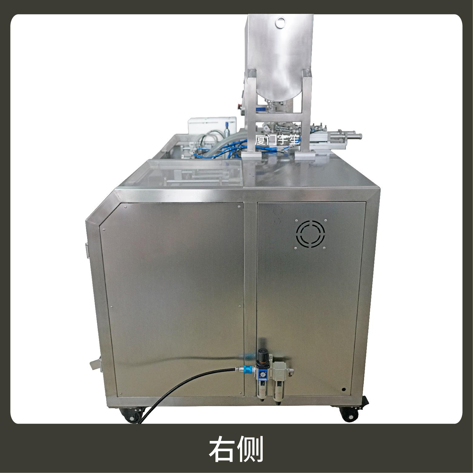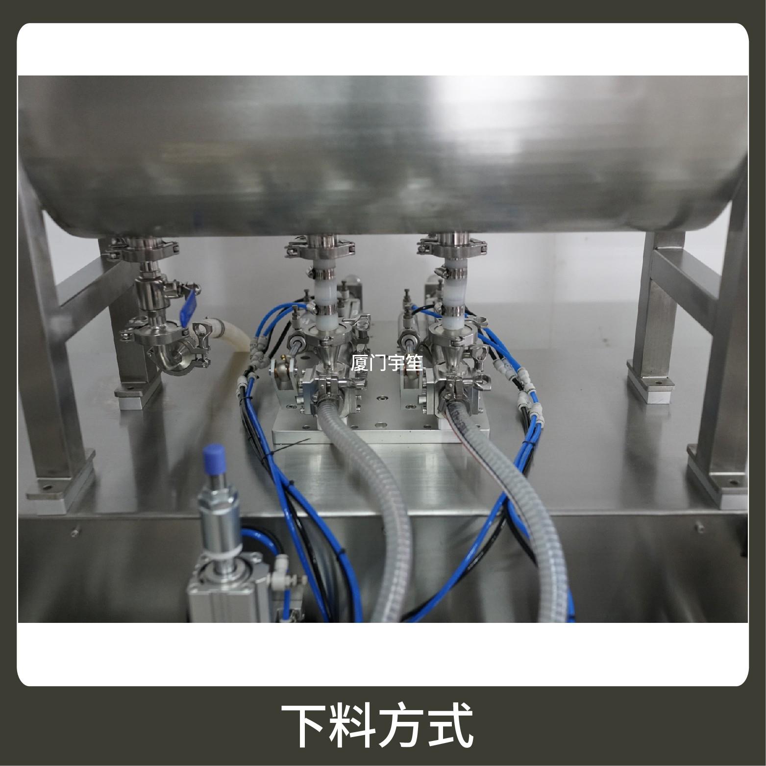 2、成品雙出,速度快,包裝流程全自動,無需人工操作。可根據充填物料的性質選配不同的下料結構。